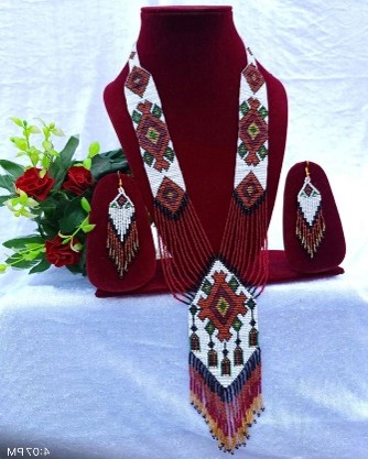 Handmade Beaded Necklace Set – Long Necklace Red